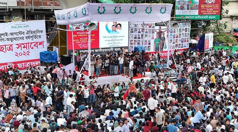 জুলাই মাসের গণ-অভ্যুত্থানের বার্ষিকী উপলক্ষে রাজধানীর শাহবাগে জাতীয়তাবাদী ছাত্রদলের আয়োজিত সমাবেশ শুরু হয়েছে। আজ রবিবার দুপুর আড়াইটার দিকে ছাত্রদলের কেন্দ্রীয় সভাপতি রাকিবুল ইসলামের বক্তব্যের মধ্য দিয়ে এই সমাবেশের সূচনা হয়। তিনি বলেন, “ছাত্রদলকে ঠেকানোর ক্ষমতা এ দেশে কারো নেই।”